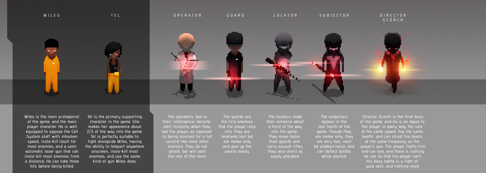 CELL-BLOCK is a fast-paced, top - down stealth combat game for Windows, Mac, Web, iPhone, iPad, and Android. As a reimagining of Cutscene Entertainment's first original game, Cell-Block, this game revolves around the same core game functionality. You, the player, a prisoner/test subject in a highly-secretive research facility, must use your powers along with your stealth skills to escape the facility with your friends. Along the way you will encounter new enemies, grow your skill, and use teamwork to succeed.